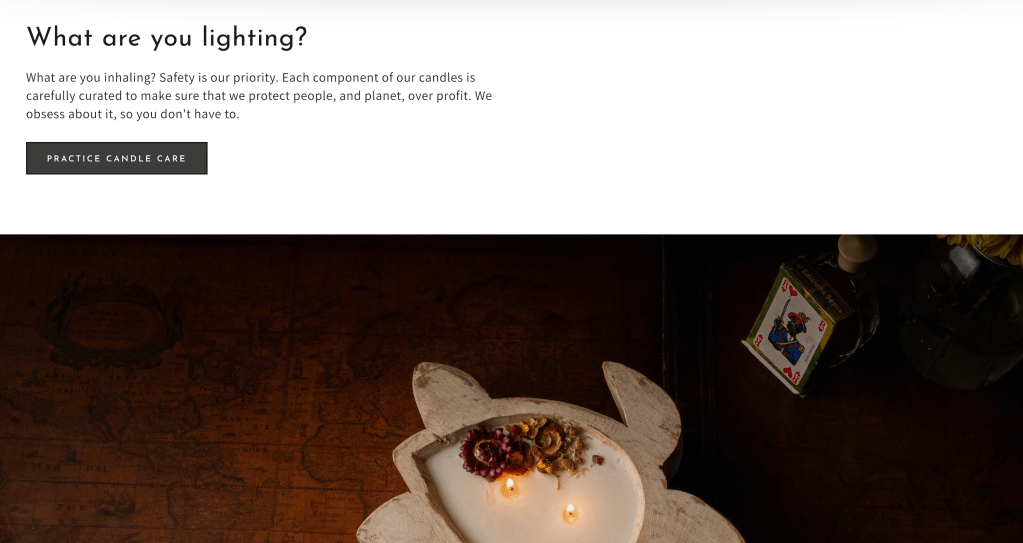 I managed the balance between creative and technical writing by focusing on what feelings my audience wants to feel after reading each type of information. When it came to discussions of the manufacturing process, ingredients, candle care tips, and frequently asked questions, I leaned heavily on the technical writing aspect, to inspire confidence and reassurance in Litberation customers that I cross my t’s and dot my i’s at every step of the process.